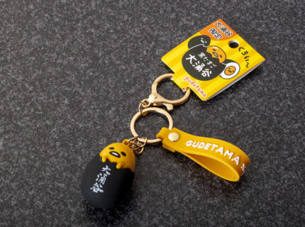 キーチェーン部分にはぐでたまの立体ラバーチャームが付属。バックやリュックにつければ、一緒にお出かけ気分♪